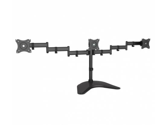 - Durable steel articulating desk stand holds three flat panel monitors from 13” to 27” with weight load capacity up to 17.6 lbs (each)
