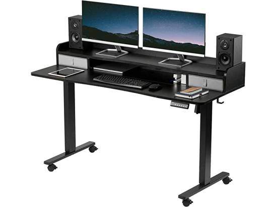 Enjoy an active work life with the Two Tier 60" x 24" Mobile Electric Desk from VIVO! The innovative 2-tier design will change the way you work, with motorized height adjustment and extra storage space. Set the main desktop at your most comfortable typing position, and place your monitors on the top surface for ergonomic viewing. Finding a healthy balance between sitting and standing throughout the long work day is made possible with an electric motor, telescopic legs, and a simple push-button memory controller.