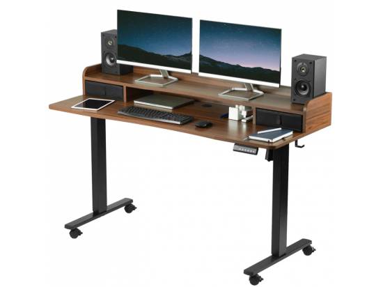 Enjoy an active work life with the Two Tier 60" x 24" Mobile Electric Desk from VIVO! The innovative 2-tier design will change the way you work, with motorized height adjustment and extra storage space. Set the main desktop at your most comfortable typing position, and place your monitors on the top surface for ergonomic viewing. Finding a healthy balance between sitting and standing throughout the long work day is made possible with an electric motor, telescopic legs, and a simple push-button memory controller.