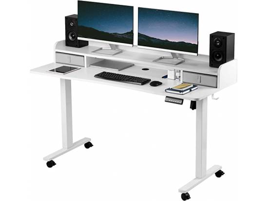 Enjoy an active work life with the Two Tier 60" x 24" Mobile Electric Desk from VIVO! The innovative 2-tier design will change the way you work, with motorized height adjustment and extra storage space. Set the main desktop at your most comfortable typing position, and place your monitors on the top surface for ergonomic viewing. Finding a healthy balance between sitting and standing throughout the long work day is made possible with an electric motor, telescopic legs, and a simple push-button memory controller.