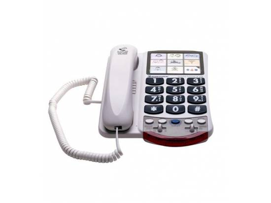 The Clarity P300 Amplified Corded Photo Phone features Clarity Power technology to make sounds not only louder, but also clearer and easier to understand. Features include an adjustable ringer pitch and volume control, bright visual ringer and a large, easy to use dial pad. With up to 26 decibels of amplification and 9 programmable photo memory buttons, the P300 is an ideal phone for those with mild to moderate hearing loss or low vision.