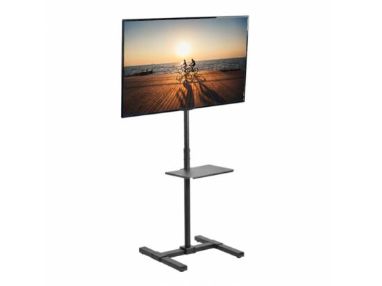 Enhance your visual display with the height adjustable Black TV Stand with Storage Shelf (STAND-TV07-S) from VIVO! This sturdy stand holds the majority of flat screens from 13” to 50” in size and up to 44 lbs in weight.