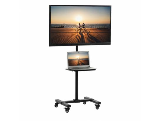 Enhance your visual display with the Black Mobile TV Cart with Storage Shelf (STAND-TV07W-S) from VIVO! This sturdy portable TV mount holds the majority of flat and curved screens from 13” to 50” in size and has a weight capacity of 44 lbs. Features include telescoping height adjustment, 30-degree screen tilt, and locking wheels. This television stand provides the perfect setup for both home and professional use whether you’re gaming on an Xbox in your dorm room, giving a work presentation at the office, or teaching in a classroom.