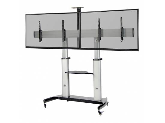 Take your double-screen display on the go with the Silver Mobile Dual TV Cart (STAND-TV12H) from VIVO! This sturdy portable 2 TV mount holds the majority of flat and curved screens from 32” to 70” in size and has a weight capacity of 220 lbs total.