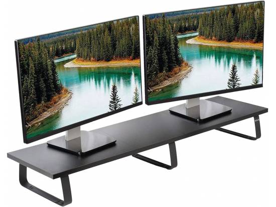 Enjoy ergonomic viewing angles and organized desk space with the Black Monitor Riser from VIVO! This sturdy, reliable stand keeps your screen at a comfortably elevated angle, and you can enjoy a variety of uses with this versatile product! In addition to holding computer monitors, it can be used to elevate keyboards, laptops, and even small TV's. This stand features a smooth wooden surface that blends well in nearly any environment. The solid steel construction of the footing allows it to support heavier monitors and TVâs (up to 44 lbs) while the sleek overall appearance compliments your display and maintains a low profile. All hardware and instructions are provided for easy assembly, so you can get your new stand ready to go in no time!
