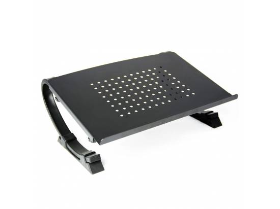 VIVO's STAND-V001N laptop stand fits any laptops/notebooks up to 16". It is black in color with an adjustable angle to fit your specific need. Its stylish design adds to any desk. The laptop plate is 14.5" x 10" with holes to allow your laptop to breathe. The stand raises the laptop 4-6" off the desk (depending on the curve adjustment) allowing for easier viewing. This stand can also be set perfectly flat for those looking to raise the height of their monitor with a monitor stand.