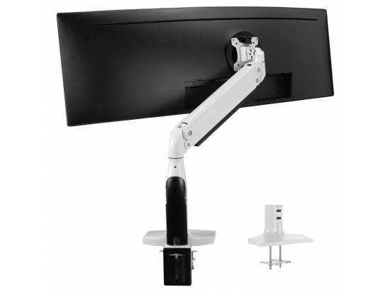 Save desk space and enjoy comfortable viewing angles with the Pneumatic Arm Single Ultra Wide Monitor Desk Mount from VIVO! This dependable mount features adjustable tension, height, and articulation to help you find the ideal viewing angles, as well as integrated cable management for a clean and organized workspace. Sleek aluminum construction and a sturdy C-clamp/grommet base support up to 39.6 lbs in weight and keep your monitor safe and secure. All hardware and instructions are provided so you can get your new stand assembled in no time!